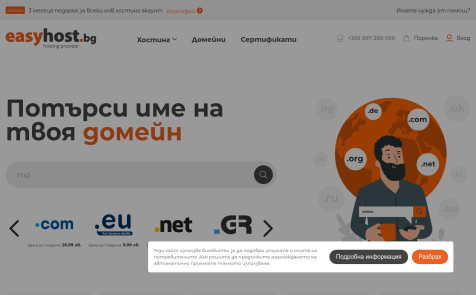 Whether you're starting a new project or looking to improve an existing one, we're here to help you every step of the way. Choose EasyHost.bg and enjoy the peace of mind that comes with professional hosting backed by passion and commitment.